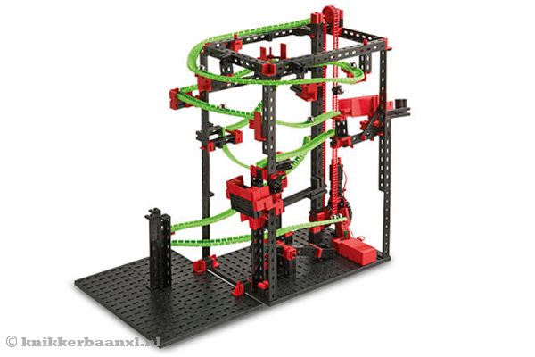Fischertechnik Dynamic L knikkerbaan met 690 onderdelen. Met een door een motor aangedreven lift zodat je de kogels automatisch naar boven kunt transporteren. Met deze set kun je 7 verschillende knikkerbaan modellen bouwen. Laat de kogels over de flexirails rollen, door chicanes schieten, een looping nemen en door stijle bochten scheuren. Met deze Fischertechnik knikkerbaan is knikker plezier gegarandeerd.